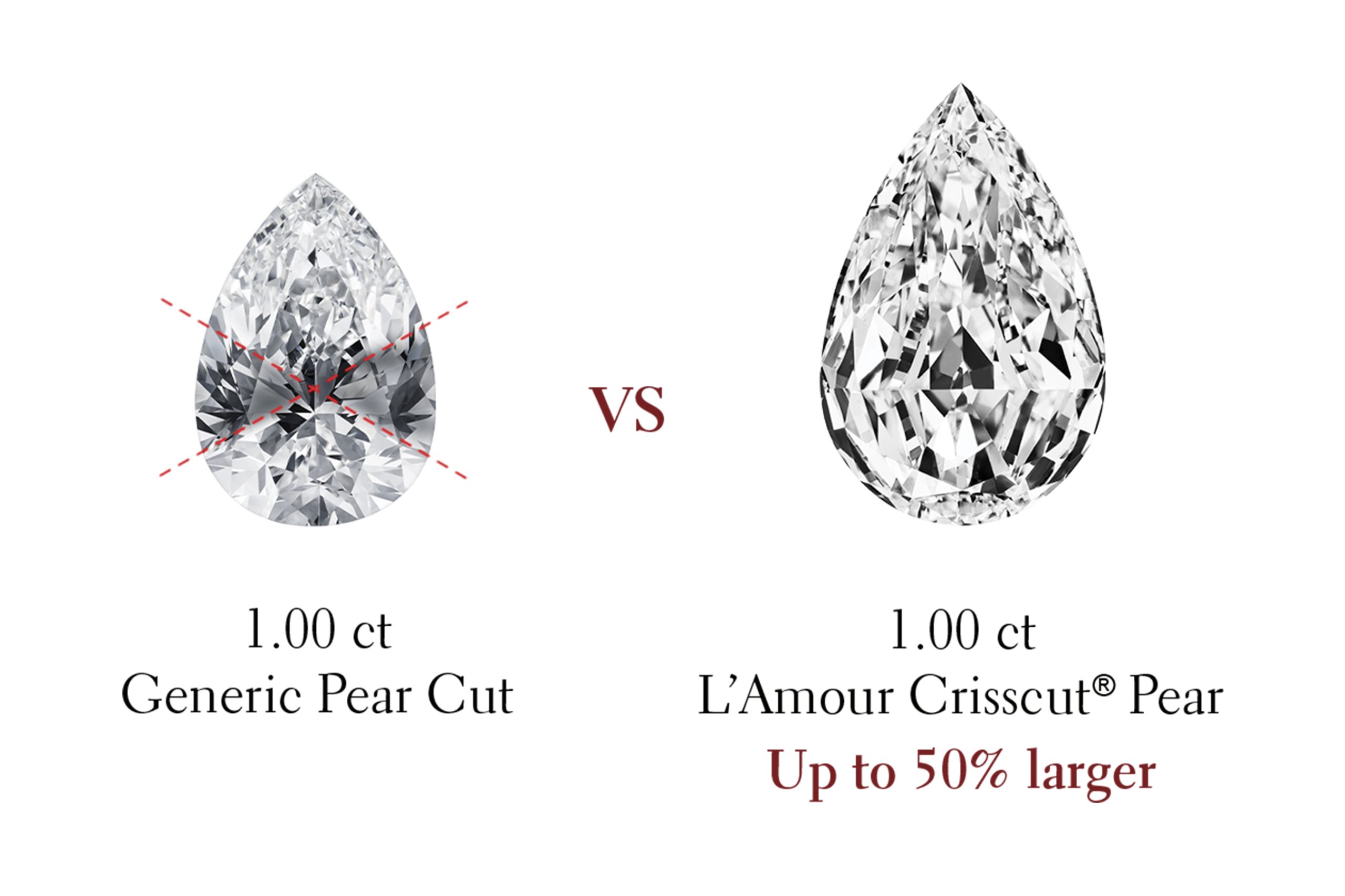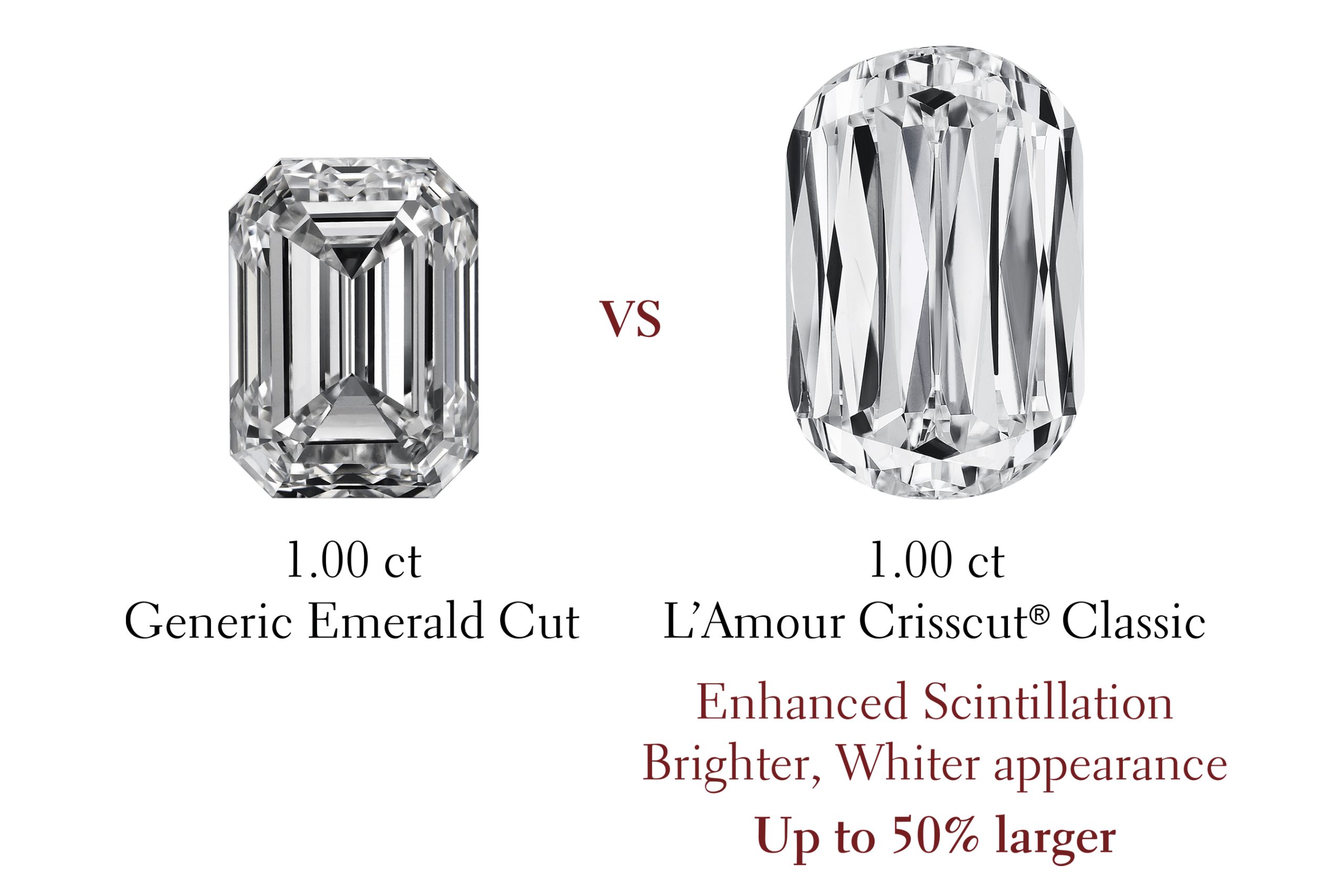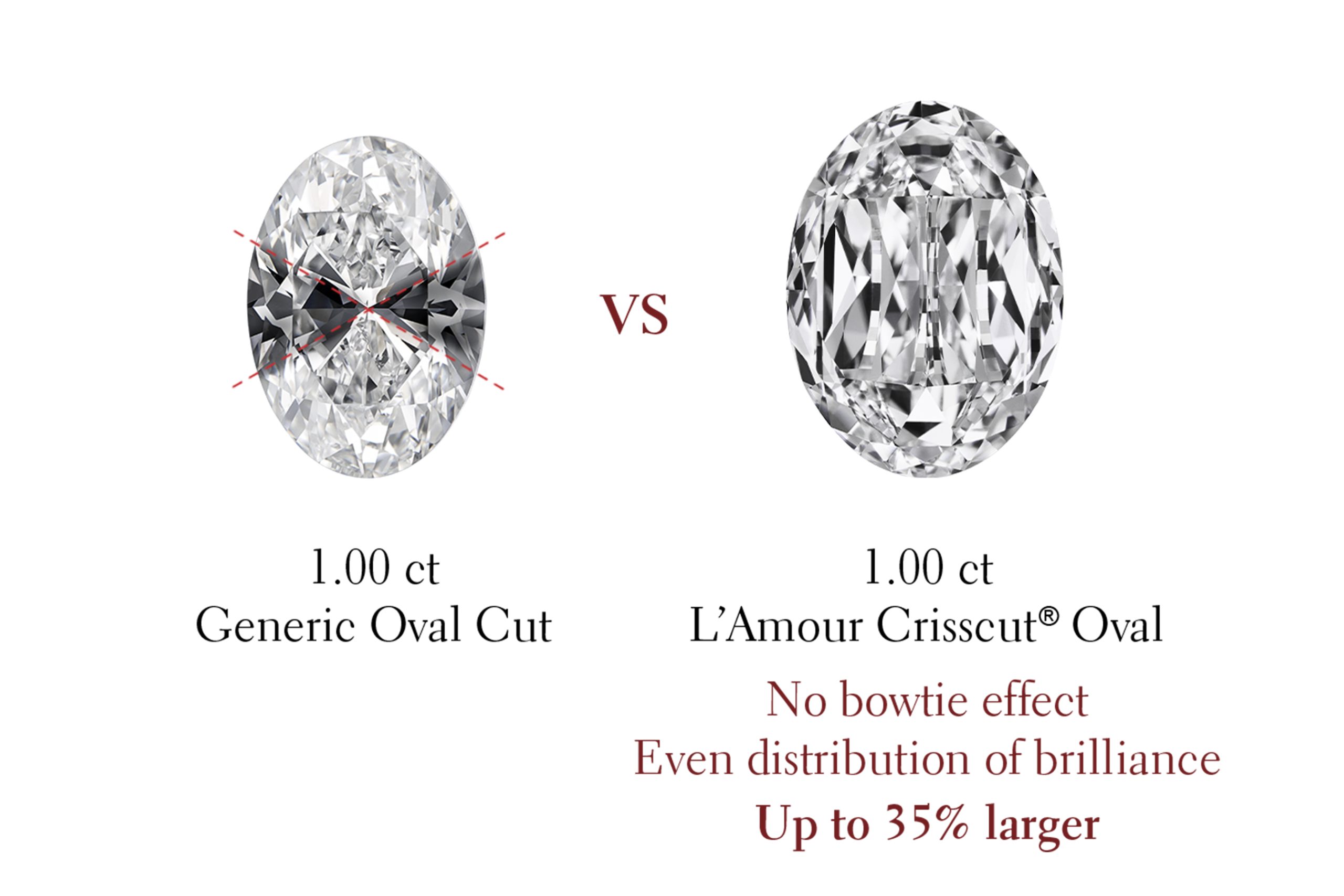 Christopher Designs has pioneered innovative diamond cutting for over 40 years & crafted a portfolio of patented proprietary diamond cuts that unleash a diamond's maximum fire potential & provide the highest perceived value. Thanks to their unique cut, our range of Crisscut® diamonds appear brighter & whiter than their generic counterparts & exhibit superior light performance. Our L’Amour Crisscut® diamond collections have a silhouette size of up to 60% larger than generic diamonds of the same size with a brighter, whiter appearance for maximum impact.